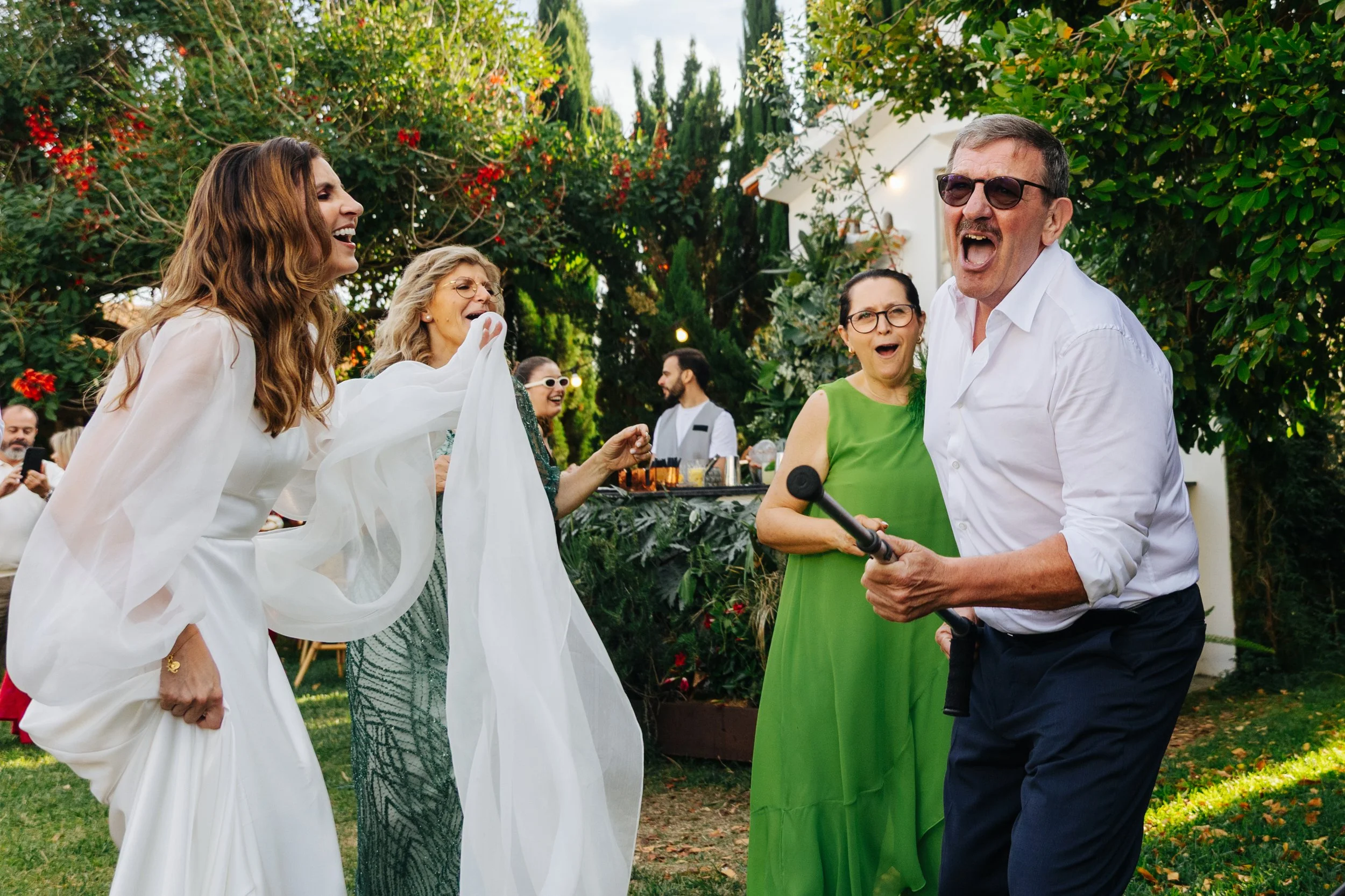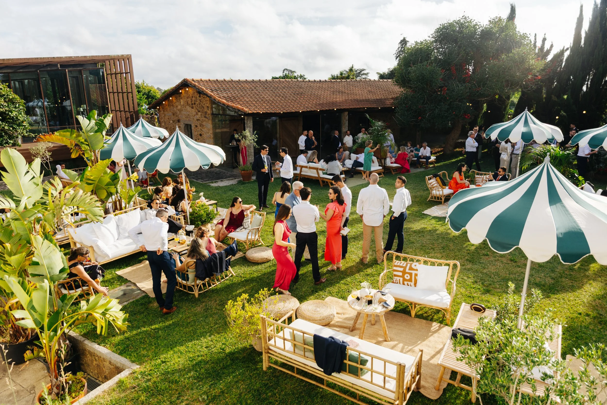 Entre jardins verdes, luz natural e uma atmosfera intimista, o dia desenrolou-se com uma beleza simples e autêntica. Desde os preparativos até à celebração, cada momento revelou gestos genuínos, olhares cúmplices e uma emoção partilhada com família e amigos.